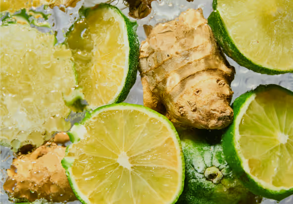 Een speels duo van limoen en citroengras met een pittige nasmaak: een introductie tot de wereld van gember. Citroenaroma's vermengen zich met fris limoensap om het pittige van koud geperste gemberwortel te balanceren. Een absolute favoriet.